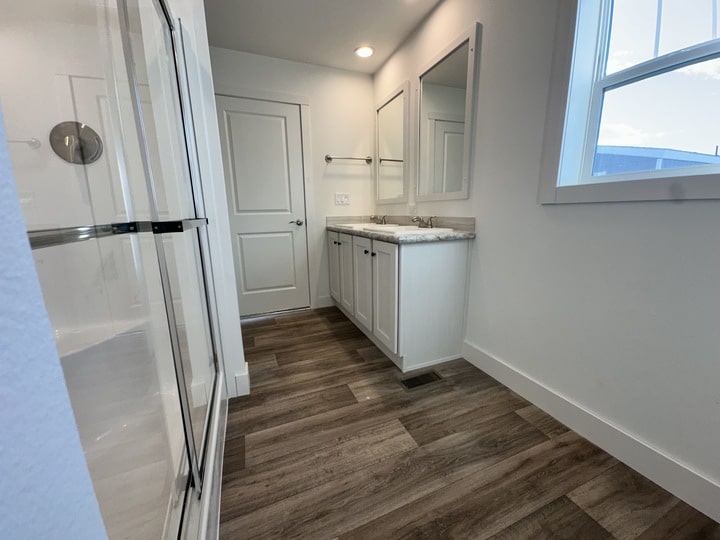 Designer Finishes Walk on durable stylish half-panel flooring in the main areas and enjoy the cozy warmth of carpet in the bedrooms Every wall is sheetrock giving you a high-end traditional feel